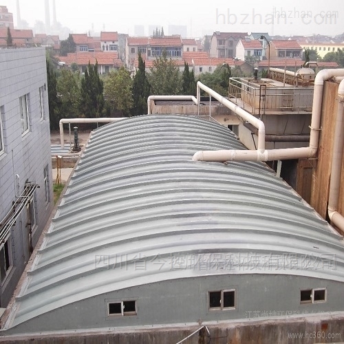 常用的污水池除臭方法有阳光板加盖,玻璃钢加盖和反吊膜结构加盖,针对不同的加盖方式,对废气的收集效果具体如下: