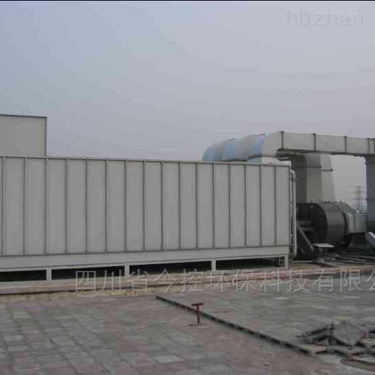 具体过程是:先将人工筛选的特种微生物菌群固定于填料上,当污染气体经过填料表面初期,可从污染气体中获得营养源的那些微生物菌群,在适宜的温度、湿度、 pH值等条件下,将会得到快速生长、繁殖,并在填料表面形成生物膜,当废气通过其间,有机物被生物膜表面的水层吸收后被微生物吸附和降解,得到净化再生的水被重复使用。