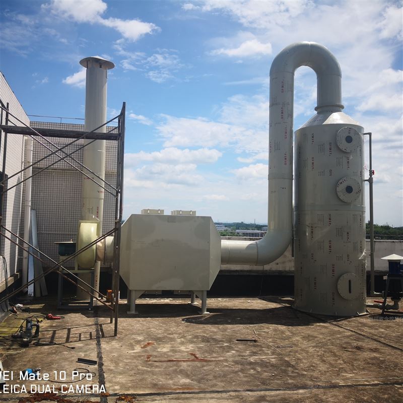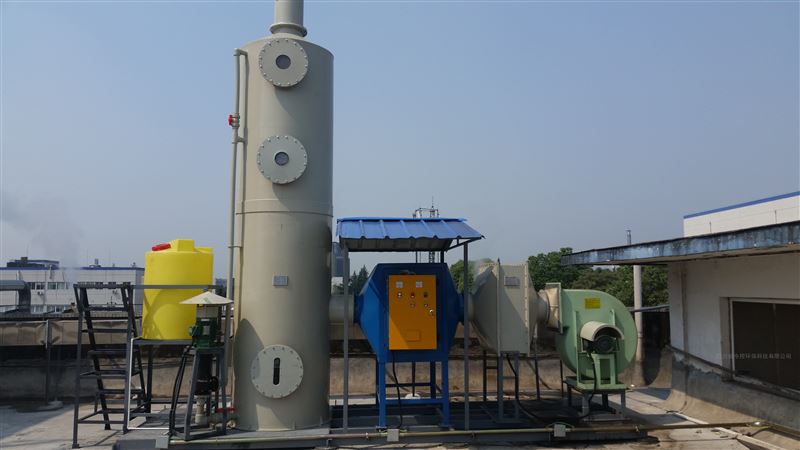 主要对气体具有酸性或者碱性臭气,洗涤液中加入一定比例NACIO、NAOH等氧化剂,利用酸碱平衡原理,将臭气中的有机硫和有机胺等氧化成臭味较轻或溶解度较高的化合物,然后用酸、碱吸收净化。